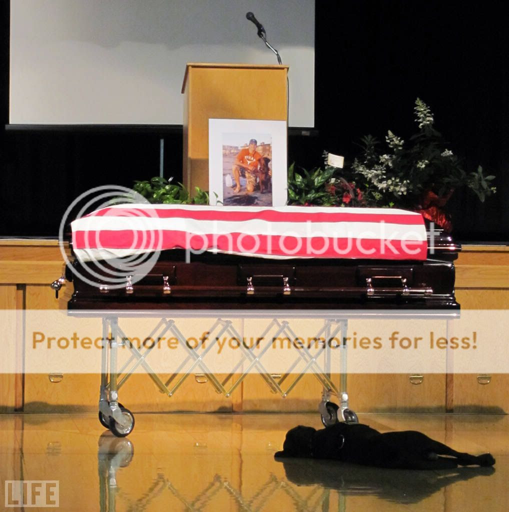 Ένα Λαμπραντόρ, δίπλα στο φέρετρο του ιδιοκτήτη του κατά τη διάρκεια της κηδείας του στο Rockford της Αϊόβα. Ο 35χρονις ιδιοκτήτης του, στρατιωτικός στους SEAL του αμερικάνικου πολεμικού ναυτικού Jon Tumilson, ήταν ένας από τους 38 στρατιωτικούς που σκοτώθηκαν όταν ένας πύραυλος χτύπησε ένα αμερικάνικο Σινούκ στο Αφγανιστάν στις 6 Αυγούστου.