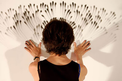 , τα οποία φτιάχνει χρησιμοποιώντας μόνο τα δάχτυλα της που τα βουτάει σε σκόνη άνθρακα.