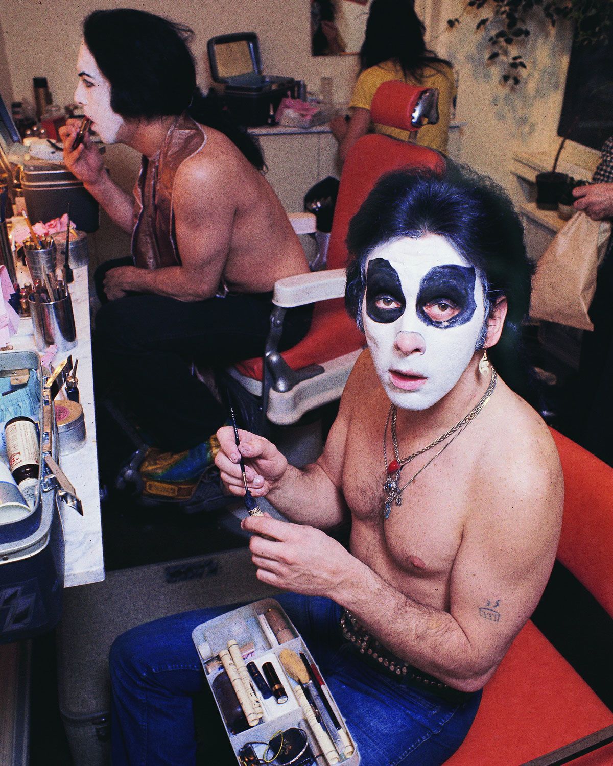 Στις φωτογραφίες που ακολουθούν, δείτε την μπάντα να φοράει το μακιγιάζ πριν από μια συναυλία το 1975.